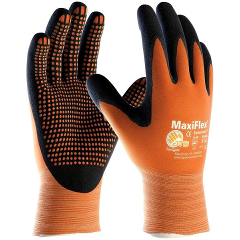 Munkakesztyű - férfi, légáteresztő, anyaga nejlon és lycra, mártott (nitril) kesztyű, XL -es méretben, narancssárga és fekete színben A hasznos ATG MAXIFLEX ENDURANCE Kesztyű, 10 termék alapvető funkciói A hasznos ATG férfi munkáskesztyű minimálisra csökkenti a sérülés kockázatát Légáteresztő anyaga elvezeti a nedvességet és maximál