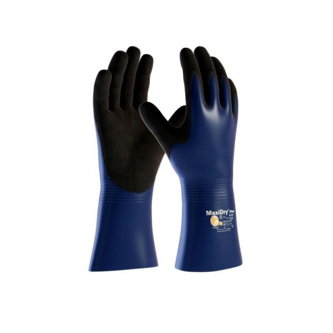 A MaxiDry® Plus™ a jó védelmet igénylő vegyi anyagokkal dolgozók számára lett kifejlesztve, és az EN ISO 374:2016 + A1:2018 szabvány szerint B típusú terméknek minősül. Folyadéktaszító képesség - a LIQUItech® technológiai platformunk segítségével megnöveltük az olajokkal szembeni ellenállást.