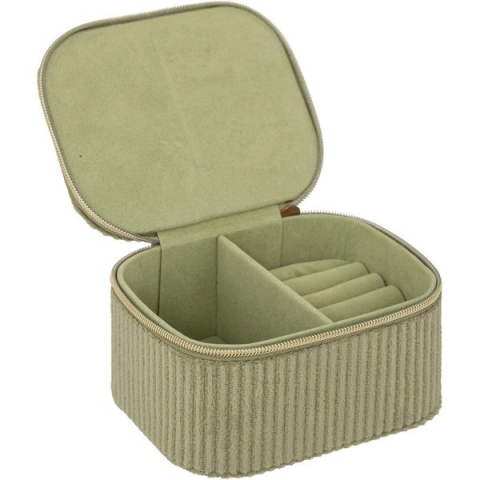 Ékszeres doboz - poliészter, zárható, 1 szintes, mérete 5,5 × 11 × 9 cm (Ma×Sz×Mé), zöld kivitel A praktikus Atmosphera ékszerdoboz ideális választás értékes ékszereid és kiegészítőid biztonságos tárolására. Poliészter, így könnyű és alacsony tisztítási igényű. A zár biztosítja az értéktárgyak bi