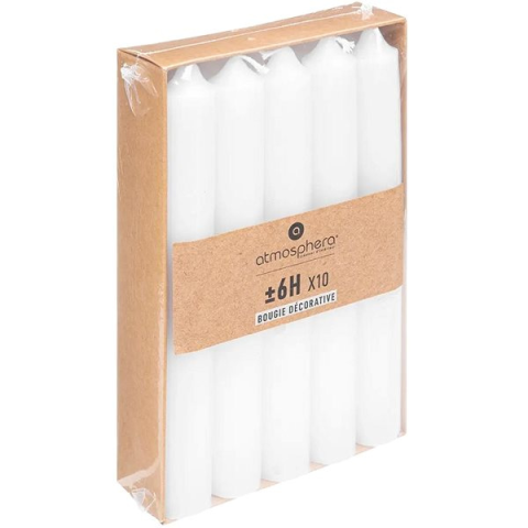 Gyertya készlet - klasszikus, parfümmentes, 2 db kanóccal, anyaga paraffin, fehér színben, égési idő 6 óra Az ATMOSPHERA Fehér Hugo 16 cm-es gyertya főbb jellemzőiAz ATMOSPHERA illatgyertya romantikus hangulatot teremt minden környezetbenKözepes méretű gyertyáról van szóAnyaga parafinAlakjának köszönhetően