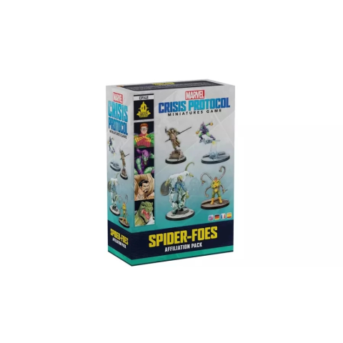 Marvel: Crisis Protocol - Pókember ellenségei kiegészítő karakter statisztika és csapat taktika kártyákkal. A szett 4 darab figurát tartalmaz, Pókember legendás ellenfeleit: Kraven, Zöld Manó, Dok...