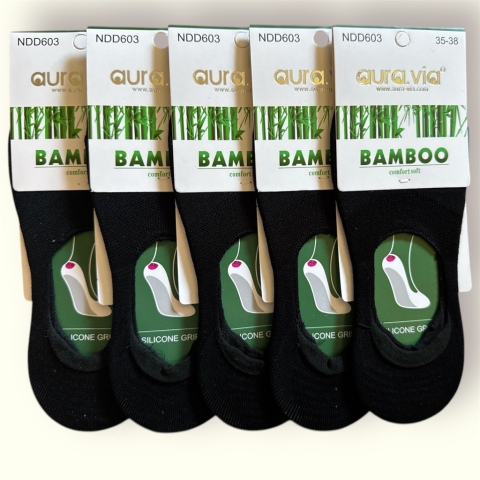 Fekete Bambusz Titokzokni - 5 Pár Ez a női titokzokni bambusz anyagból készült, ami természetes, puha és jól szellőzik – ideális melegebb napokra. A csomagban 5 pár fekete zokni található. Alacsony szabású kialakítása miatt nem látszik ki a cipőből. A sa