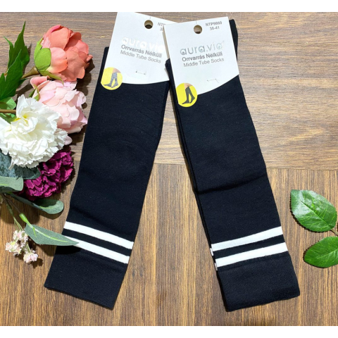 Aura Via Női Fekete Térdzokni – Pamut, Csíkos Szegéllyel Az Aura Via női fekete térdzokni pamutból készült, amely biztosítja a kényelmet és a légáteresztést. A zokni szegélyén fekete vagy fehér csíkos dizájn díszíti, így stílusos és praktikus viseletet k