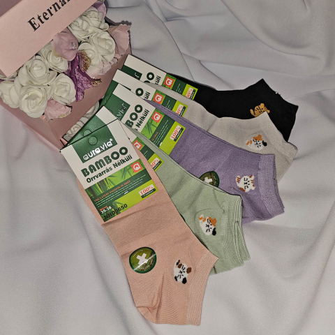 Bambusz titokzokni vegyes színben 5 pár/csomag cica mintás
