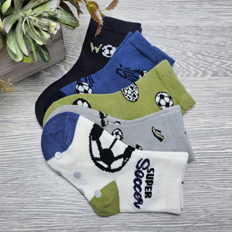 BÉBI fiú zokni foci mintás 5 pár/cs CSÚSZÁSGÁTLÓS talprésszel