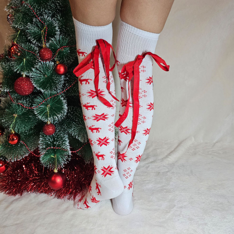 1 kép Aura Via Combzokni RÉNSZARVAS mintás masnival 35-38, Fehér
