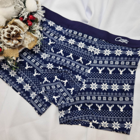 Mikulásos boxeralsó rénszarvas mintás kék!