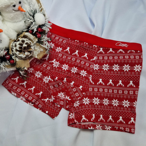 Mikulásos boxeralsó rénszarvas mintás piros!
