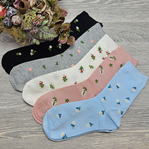 1 csomag 5 pár vegyes színű mintás zoknit tartalmaz.