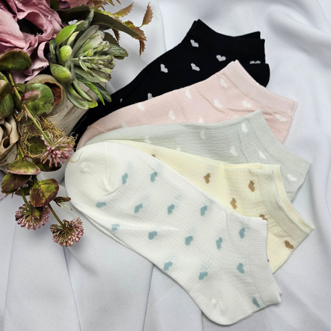 Női titokzokni anyagában mintás apró szívecskékkel 5 pár/cs