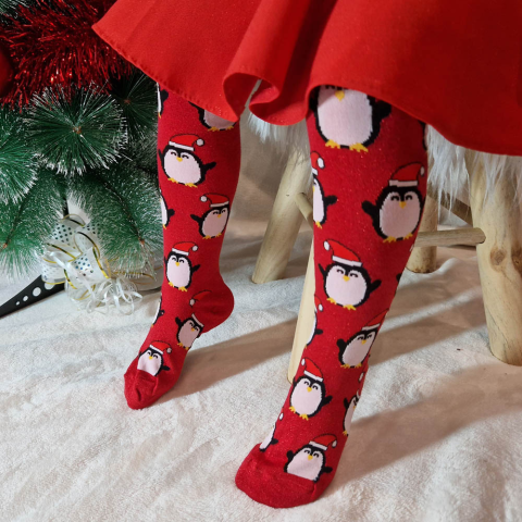 6 kép Aura Via Télapós harisnya lurexes -PINGVIN-piros 4-6 év