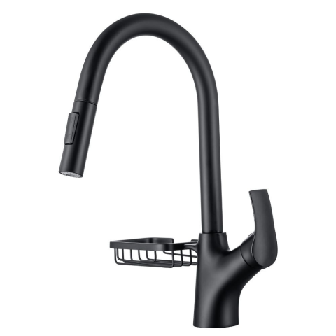 1 kép    AUSTLER FH-3411 mosogató csaptelep - kihúzható multifunkciós fej - tároló rekesz (fekete)