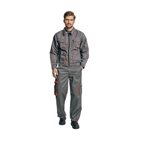 Munkás kabát szürke - narancsAlapanyag:65 % poliészter, 35 % pamut, 235 g /m² A termék megfelel az EN 340 szabványoknak.Munkakabát kényelmes szabással és funkcionális kiegészítőkkelÁllítható mandzsetta műanyag patentokkalTöbbfunkciós zsebekkelSzín: Szür