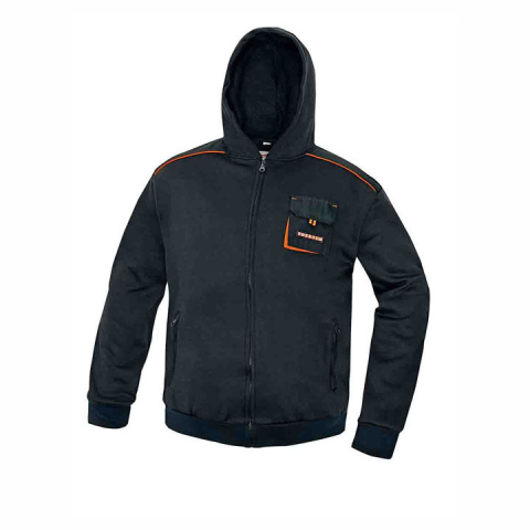 Kapucnis pulóver, puha, bolyhos belsővel Alapanyag: 100 % poliészter, 300 g/m² Belül bolyhos, meleg réteggel Alsó szegés és mandzsetta kötött, rugalmas anyagból készült Szín: fekete A termék megfelel az EN340 szabványnak.