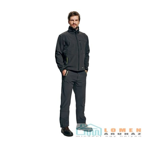 OLZA softshell kabát szürke L • féri softshell dzseki kényelmes szabással, vízálló és légáteresztő TPU membránnal • belső polár béléssel • csíkozott és világos sárga részletekkel • megerősítő rátét a könyökrészen, szellőző hónaljrész • 2 oldalzsebbel