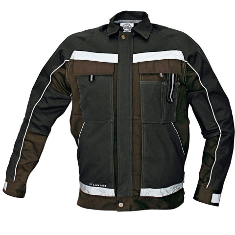 (STANMORE) Munkás kabát sötétbarna-fekete Alapanyag: 100 % pamut, 275 g /m² A termék megfelel az EN 340 szabványnak.Munkakabát kényelmes szabással és magas ellenálló képességgelFényvisszavető kiegészítőkTeljes fém cipzárak és patentokÁllítható patentos