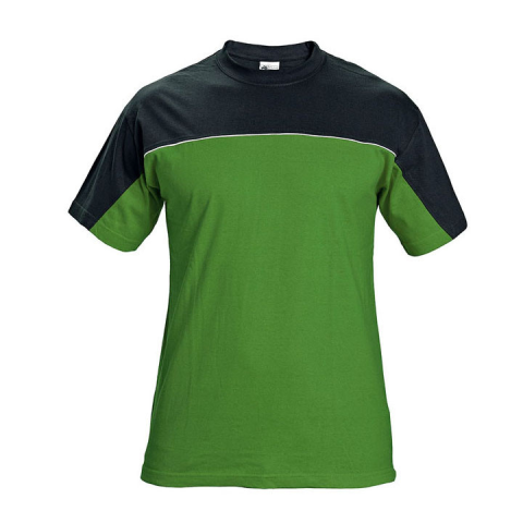 Pamut póló zöld Alapanyag:100 % pamut, 155 g /m² A termék megfelel az EN 340 szabványnak. Minőségi kétszínű rövid ujjú póló Nyakán rugalmas szegéssel (5 % elasztán) Szín: Zöld / Fekete Méret: S, M, L, XL, XXL, 3XL, 4XL