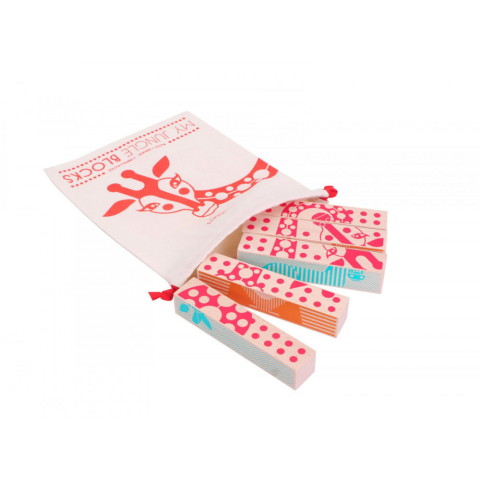 Nyers fából készült 4 az 1-ben állatos blokkos kirakó. Az 5 db téglalap alakú blokk segítségével minden oldalon 4 aranyos állat képét lehet kirakni. A kicsik motivációja, hogy szín szerint kiválogassák az oldalakat és megfelelő sorrendben egymáshoz. Kedve