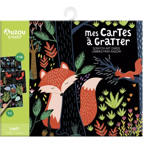 Bagoly, róka, süni és számos egyéb erdei állat várja hogy feledezd színes világát ezzel a karckép készítő új Auzou készlettel! Kapargasd meg a fekete felületet, készíts mintákat és nézd, ahogy előtűnnek a háttérből a színek!A csomag 10 db lekaparható képe
