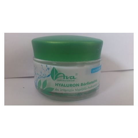 Ava hyaluron bőrfiatalító és hidratáló arckrém 50 ml Hyaluron Bőrfiatalító és intenzív tápláló-hidratáló arckrém. Rugalmasságát vesztett bőrre. Intenzíven tápláló-regeneráló és fiatalító arckrém Hialuronsav kivonattal, mely a botox kezelése természetes