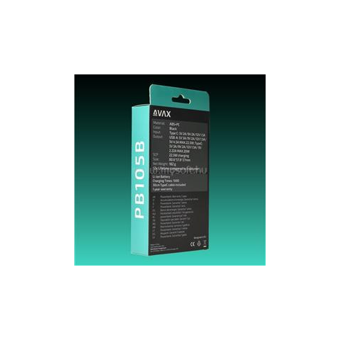 1 kép AVAX Powerbank USB-C 20W 10000mAh (fekete) (AVAX_PB105B)