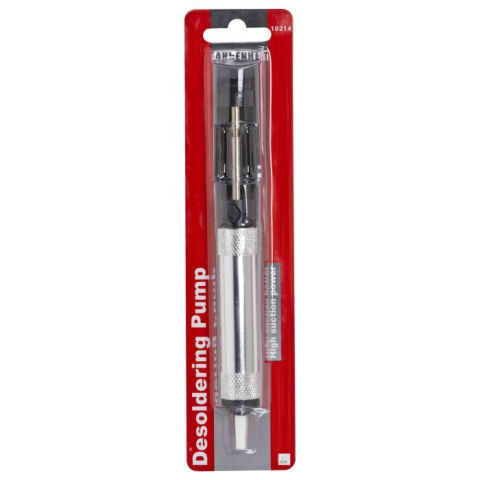 Termékjellemzők: Anyag: fém/műanyag Ónszippantó csúcs cserélhető: Igen Csúcshegy átmérő: 2,3mm Űrtartalom: 76ml Méretek: 20x190mm Ónszippantó Egy eszköz amely felszívja a folyékony forraszanyagot egy dugattyús vákuum pumpa segítségével. Gyors kioldás,