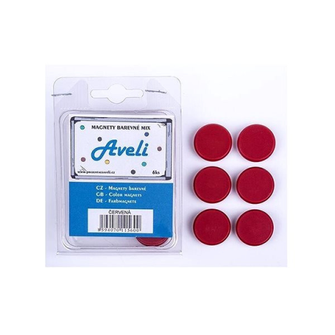 Mágnes - átmérője 24mm, kerek alakú, műanyag felület, piros kivitel, 6 db a csomagban Ha az irodádban vagy otthonodban van egy mágneses tábla, akkor egy csomag AVELI mágnesre is szükséged lehet. Mindegyik csomag 6 darab, közepes méretű, kerek alakú mágnest tartalmaz, amelye