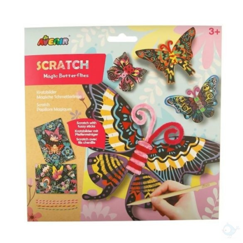 Készíts különleges pillangokat karckép technikával és zsenília rudakkal!Az Avenir Scratch egy teljesen új megközelítése a kézműves alkotásnak. A különleges fekete formák alatt színek lapulnak, amelyeket a felső réteg lekaparásával csalogathatsz elő.Egy já