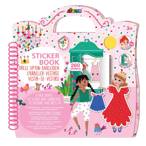 260 db újrahasználható matricát és 4 arcfestéket tartalmazó matricázó könyv az Avenir-től! A spirál kötésű lapozható oldalak közül 2 pop-up, azaz kihajtható ablakokat is tartalmaz, amikkel még izgalmasabbá válik a játék!