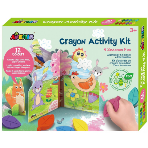 Kreatív színező készlet, ami 12 db színes zsírkrétát, valamint számos kiszínezhető és összeépíthető 3D figurát tartalmaz.A kréták méhviasz alapúak és levél alakúak, így még izgalmasabbá teszik az alkotást.A 4 évszak téma megismerteti a gyerekekkel a tavas