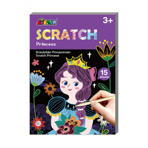 Az Avenir mini karckép könyve már egészen kicsi kortól fejleszti a kézügyességet.Egyedülálló kreatív technika, melynek lényege, hogy a sötét papírlapokat megkarcolva vibráló színek jelennek meg, ez adja ki a formákat és a mintákat. A karceszköz minden egy