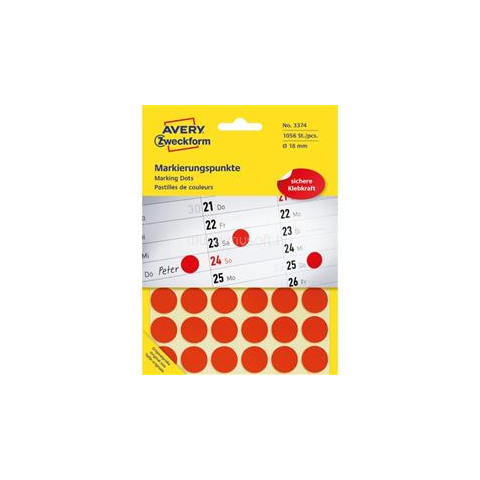 1 kép Avery 3374 18mm 1056db-os piros jelölőpont (AVERY_3374)