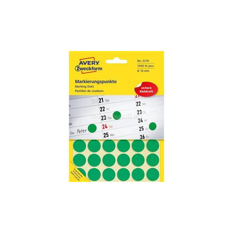1 kép Avery 3376 18mm 1056db-os zöld jelölőpont (AVERY_3376)