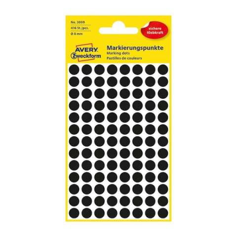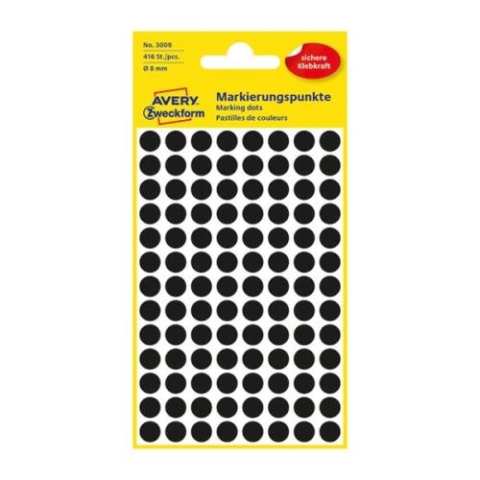2 kép Avery Etikett AVERY 3009 jelölőpont 8mm fekete 416 db/csomag