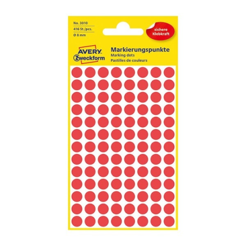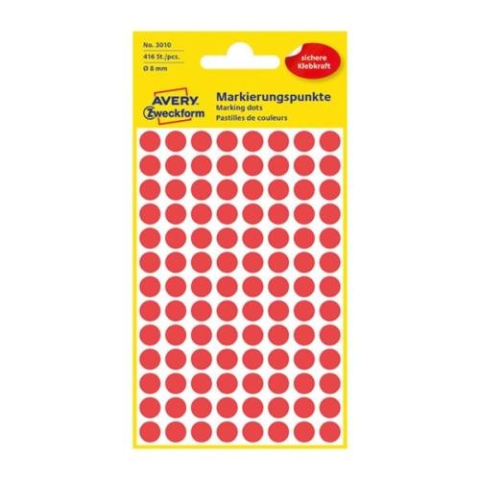2 kép Avery Etikett AVERY 3010 jelölőpont 8mm piros 416 db/csomag