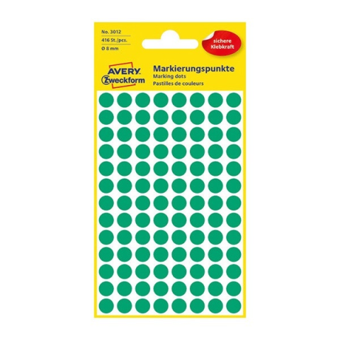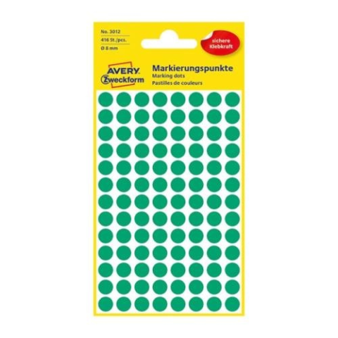2 kép Avery Etikett AVERY 3012 jelölőpont 8mm zöld 416 db/csomag