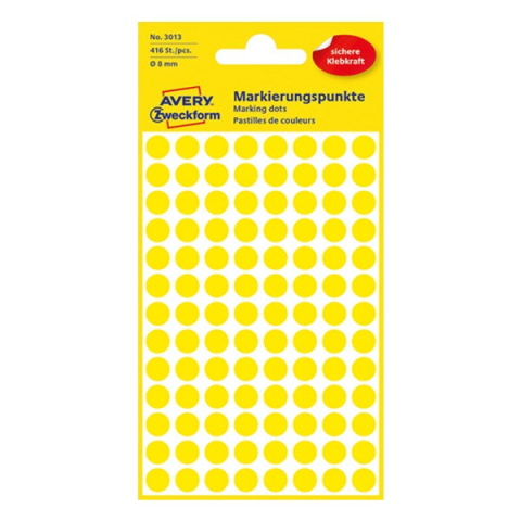 Etikett AVERY 3013 jelölőpont 8mm sárga 416 db/csomag - 01.01119 - Etikettek -