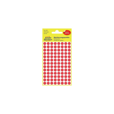 1 kép Avery Etikett címke, o8mm, jelölésre, 104 címke/ív, 10 ív/doboz, Avery piros