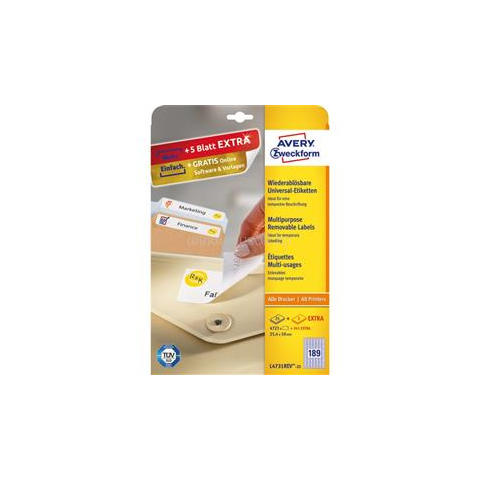 1 kép Avery L4731REV-25 25,4x10mm visszaszedhető 5670db-os etikett (AVERY_L4731REV-25)