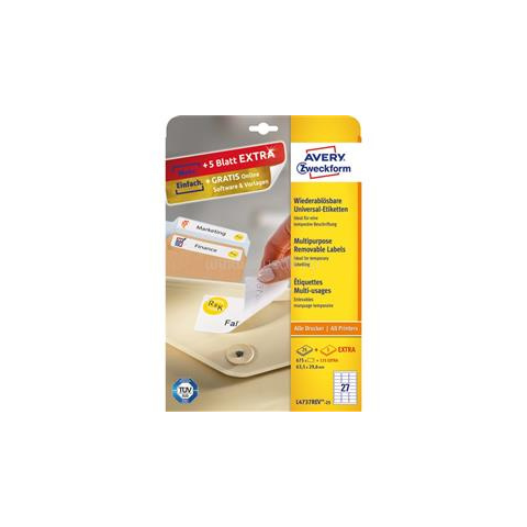 1 kép Avery L4737REV-25 63,5x29,6mm visszaszedhető 810db-os etikett (AVERY_L4737REV-25)