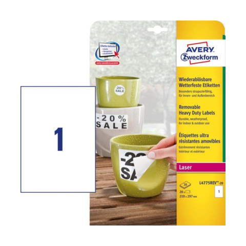 1 kép Avery L4775-20 210×297mm vízálló 20db-os Etikett Fehér