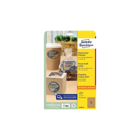 1 kép Avery L7109-25 210x297mm újrahasznosított barna kraft etikett (AVERY_L7109-25)