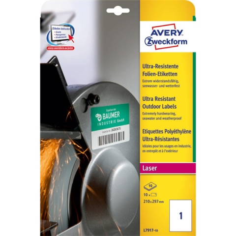 Avery L7917-10 210x297mm ultra ellenálló 10db-os etikett (L7917-10)