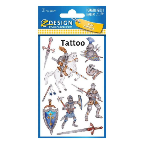 Tetoválás matrica AVERY lovagok Az ideiglenes tetoválás vízálló, és megtévesztően valódinak tűnik. Egyszerűen vízzel kell felhelyezni, és kis olajjal könnyen eltávolítani. A tetoválás csúcsminőségű, gyermekbiztos és dermatológiailag tesztelt és külső l
