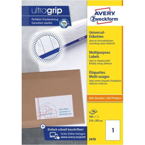 Avery zweckform Avery 3478 210x297mm univerzális 100db-os etikett (3478)