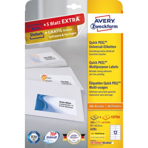 Avery zweckform Avery 4781 QP 97x42,3mm univerzális 360db-os etikett (4781)