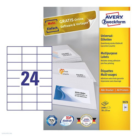 1 kép Avery zweckform Etikett címke univerzális 3474 etikett fehér 70 x 37 mm