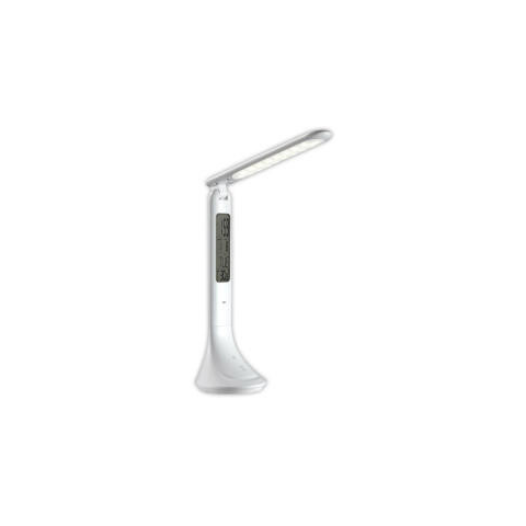 Egyszerű, minimalista íróasztali lámpa beépített akkumulátorral, melynek köszönhetően akár 4 órán át használhatjuk a lámpát töltés nélkül. * Érintőkapcsolóval 3 lépésben állítható fényerő * Naptárfunkció * Óra és ébresztőóra LCD kijelzővel * Hőmérséklet