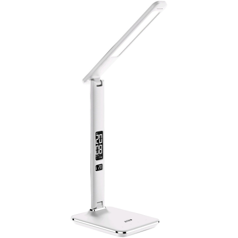 Részletes leírás A 6W-os teljesítményű, állítható– hideg, meleg, természetes fehér – színhőmérsékletű, bőrhatású asztali lámpa beépített LCD kijelzővel rendelkezik. Az office lámpák ahogy a neve is érzékelteti, ideálisak irodába vagy dolgozószobába
