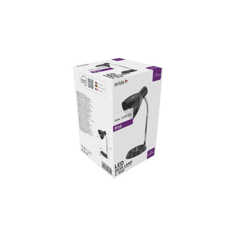 Avide asztali lámpa.  Szín: Fekete Teljesítmény: 11W Élettartam: 30 000 óra Feszültség: 220-240V IP védettség: IP20